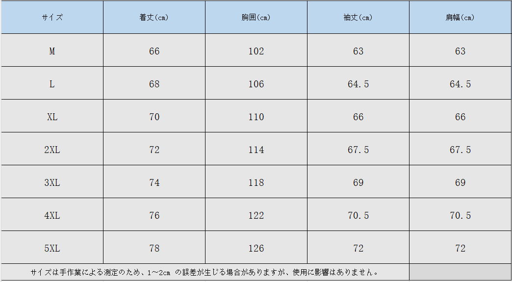 ■XXL:着丈76cm バスト116cm 肩幅51cm 袖丈65cm
