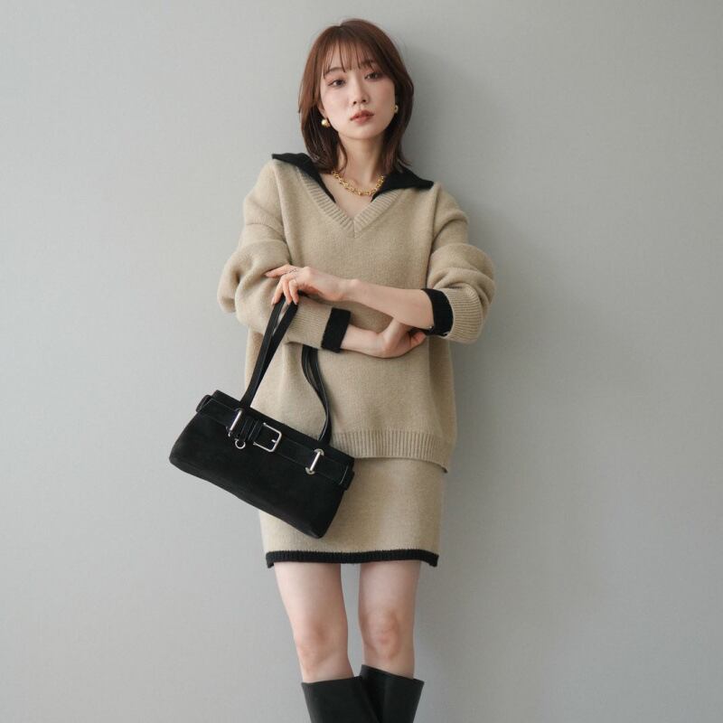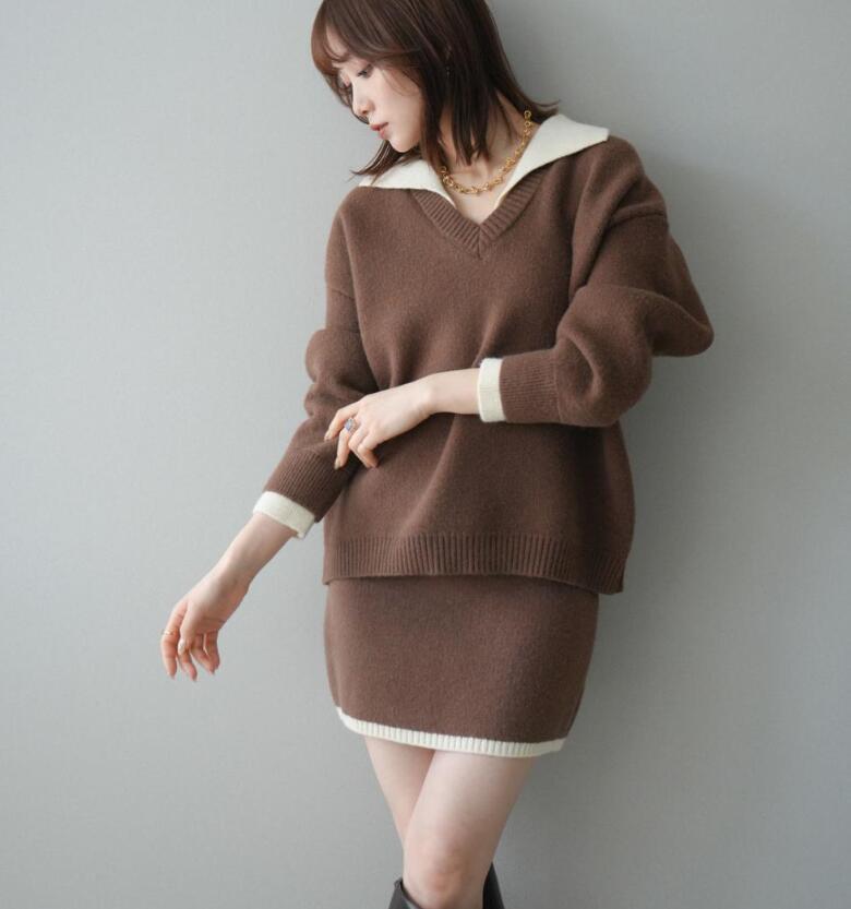 ニット素材のセーターは程よいフィット感で着心地が良く、スカートとのバランスも抜群。セットアップとしてはもちろん、単品使いでも着回し力が高いのが魅力です。3色展開で、年齢やシーンを選ばず活躍します。