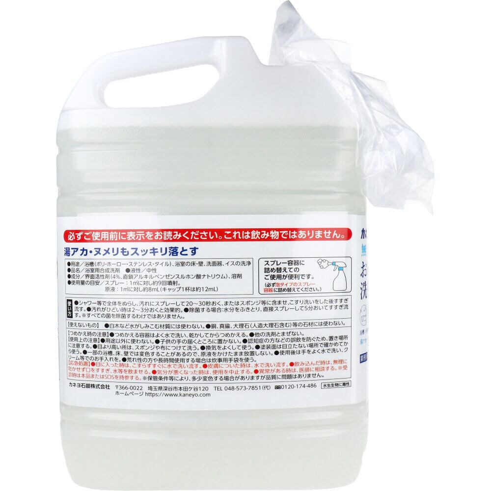 ・シャワー等で全体をぬらし、汚れにスプレーして20~30秒おく、またはスポンジ等に含ませ、こすり洗いをした後すすぎ流す。