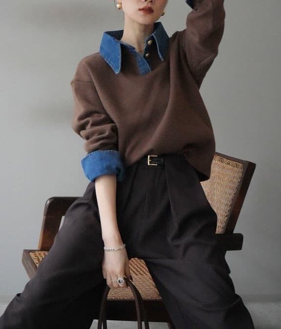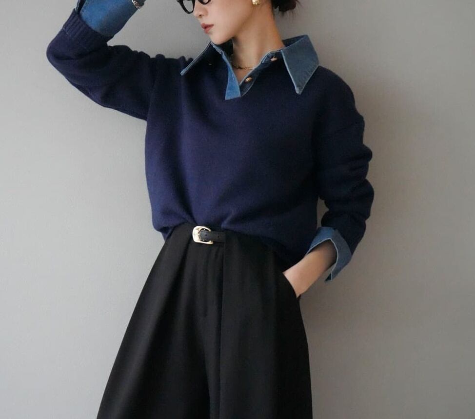 ✔ デニム×ニットの異素材ミックス