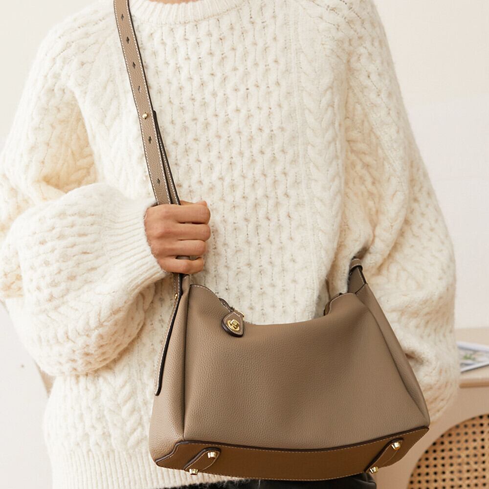 スタイリッシュな上品さを追求した2026年の新作、本革製のレディースショルダーバッグとハンドバッグのご紹介です。このバッグは、どんなシーンでも洗練されたコーディネートを演出します。