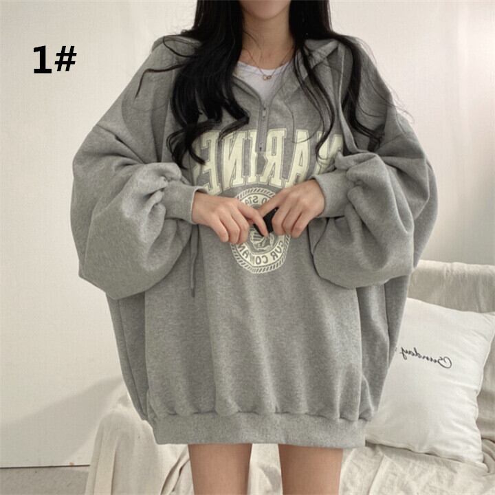 秋冬服 レディース パーカー, プルオーバー, フード付き, ビッグシルエット, 英字ロゴ