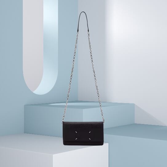 【商品詳細】 ブランド:Maison Margiela(メゾンマルジェラ) アイテム:チェーンウォレット / 4ステッチ カラー:ブラック(シルバーチェーン) 素材:カーフレザー(エンボス加工のグレインレザー)