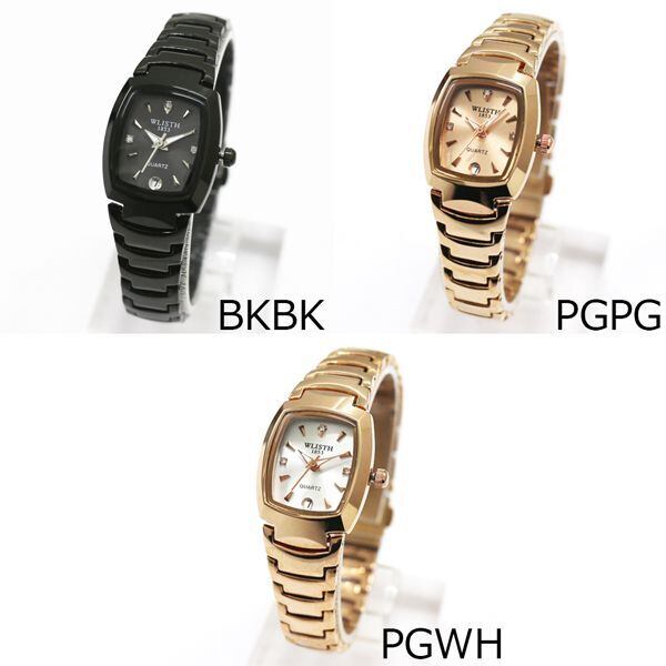 レクタングラーフェイスの小さめラグジュアリーウォッチ 日付カレンダー クオーツ WSQ020 レディース腕時計