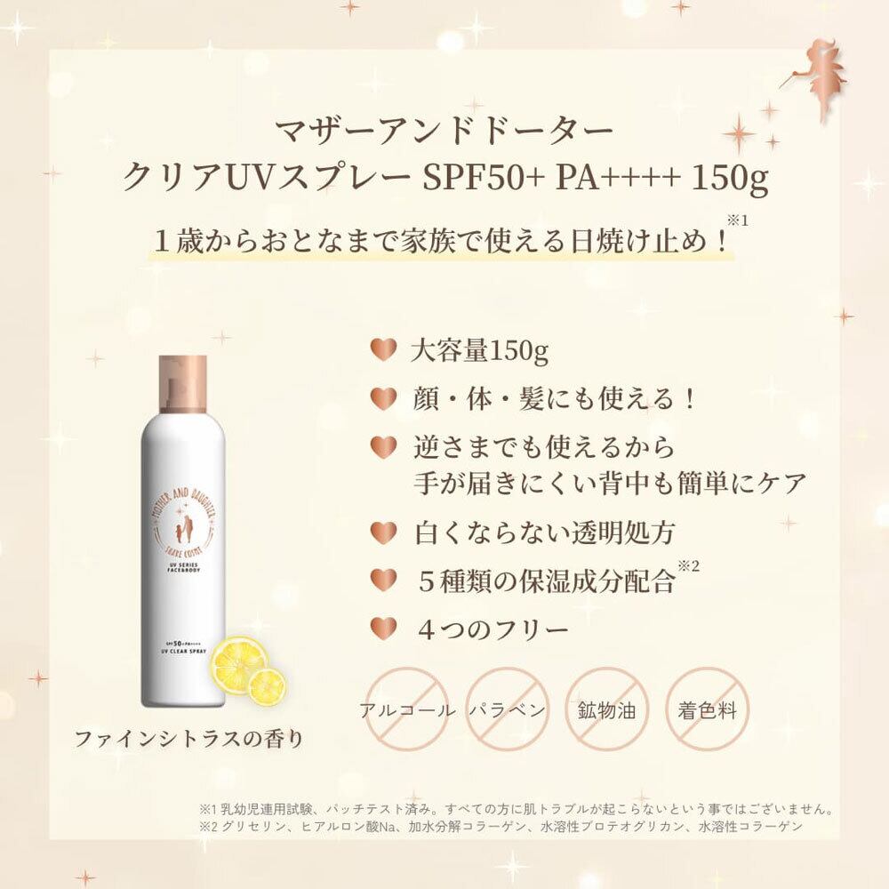 マザーアンドドーター クリアUVスプレー 日やけ止めスプレー SPF50+ PA++++ 150g